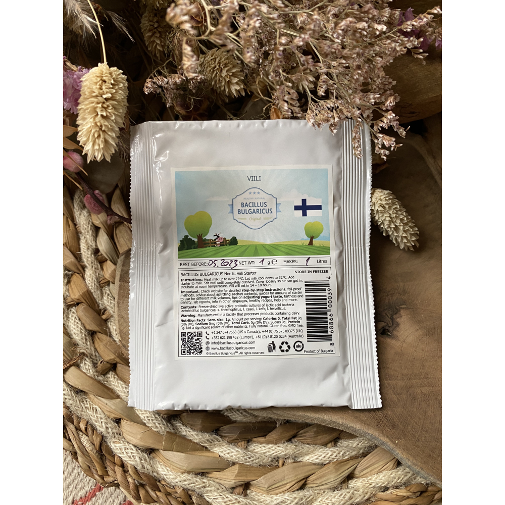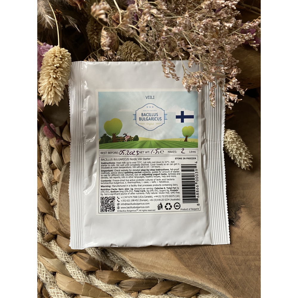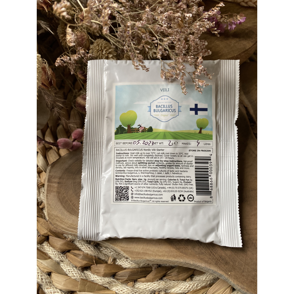 Our Viili starter makes genuine Scandinavian Viili of exceptional quality with classic Viili taste, thickness and aroma. Classic Viili has a mild, nutty, cheese-like taste and a thick stretchy viscous consistency — the perfect balance between slimy and creamy — a distinguishing characteristic of the traditional Viili.