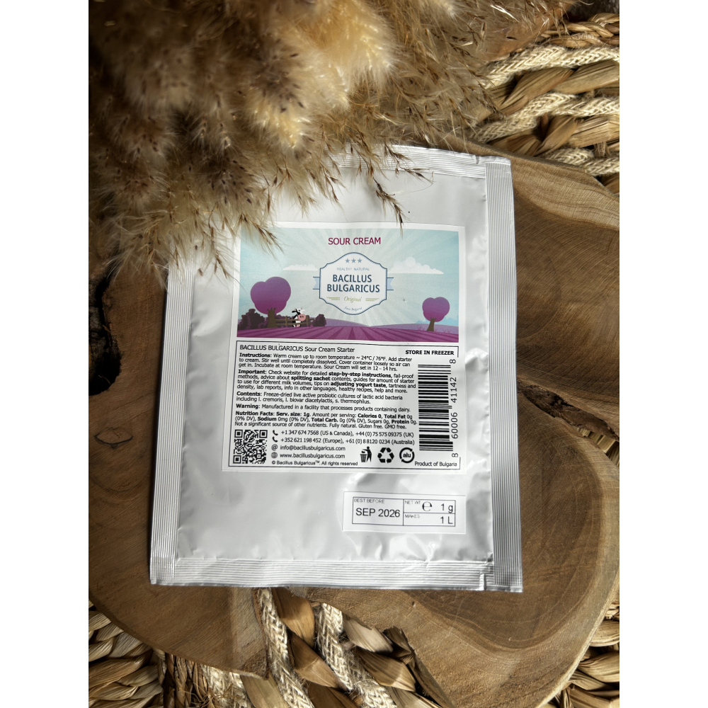 Dit is een heirloom Sour Cream-starter met levende actieve bacteriën, wat betekent dat je zure room van je vorige batch kunt hergebruiken om je nieuwe batch te kweken, zo lang als je wilt.